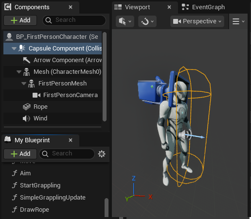 Step one of recreating my physics based grappling hook in Unreal Engine and making a simple game out of it.