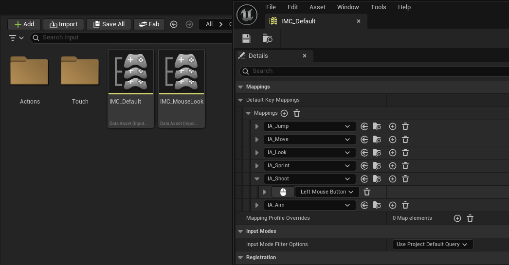 - Find and open the Input Mapping Context object (e.g. IMC_Default in the first person project).