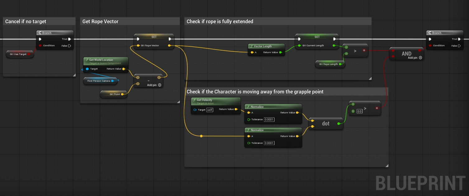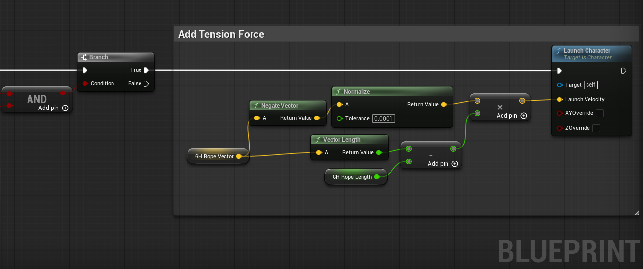 - Save the 'Distance' value from the same hit result to a different variable (e.g. 'Rope Length'), so we know how long the rope is meant to be.
